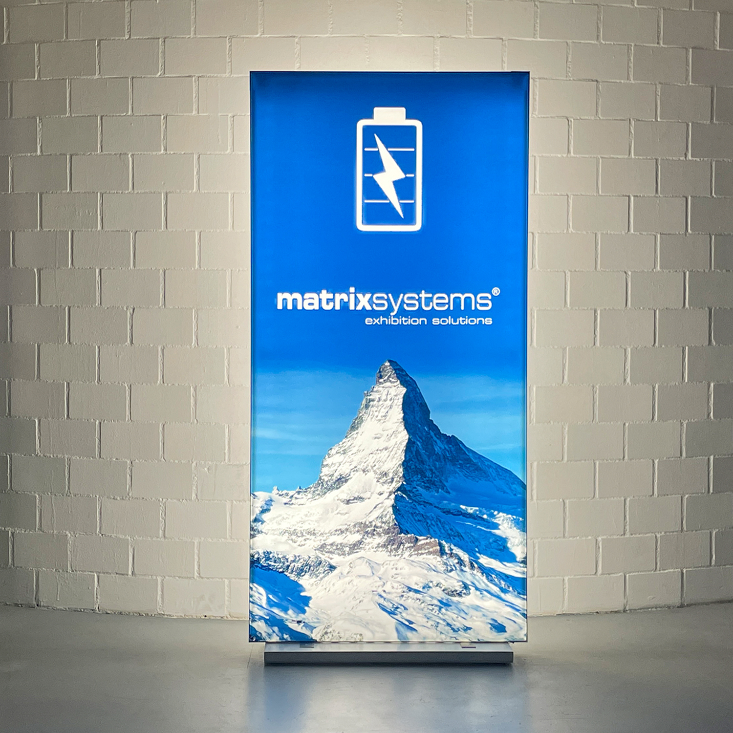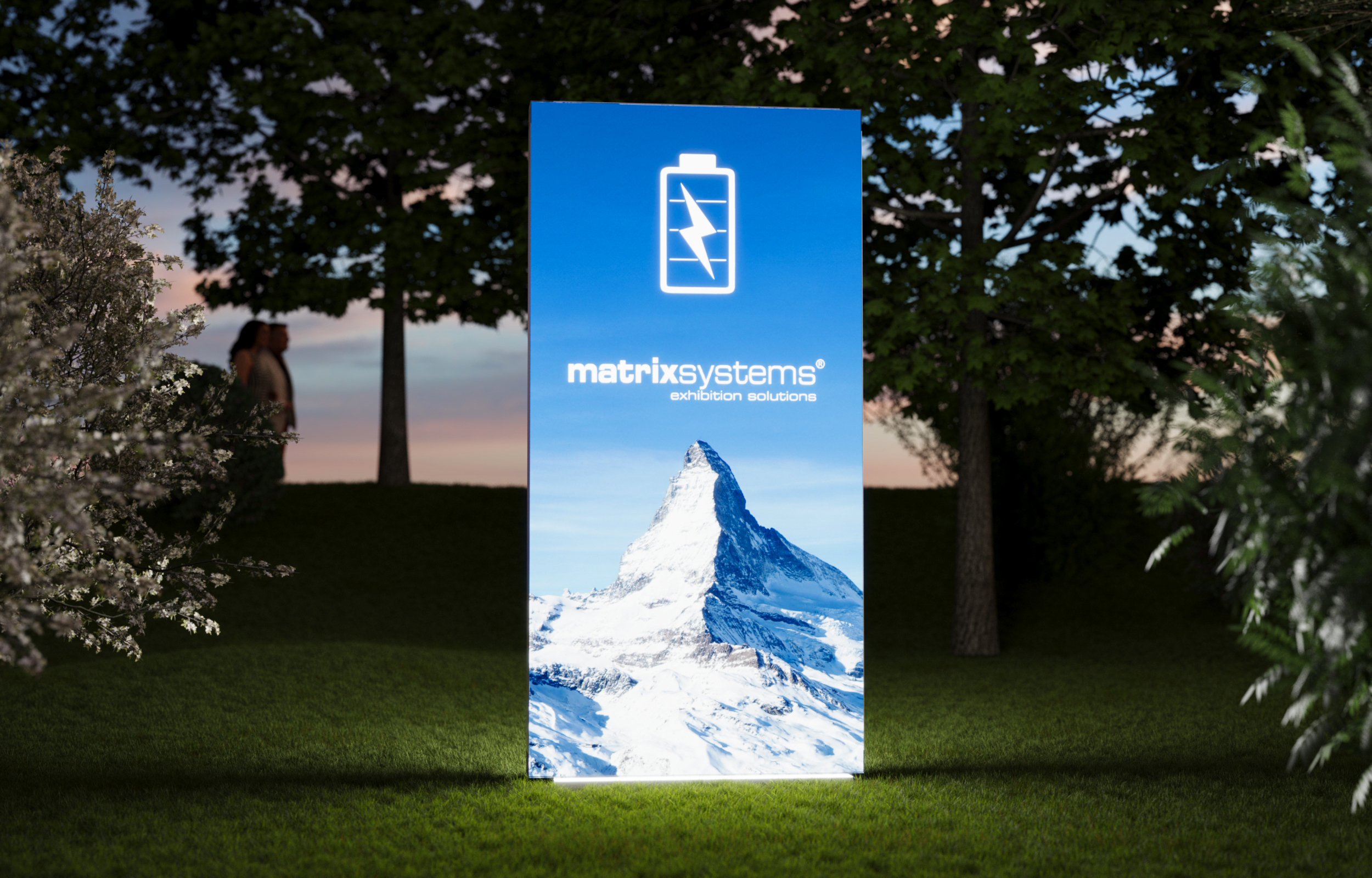 Entdecken Sie unsere neueste Innovation: das batteriebetriebene Display von Matrix Systems. Dank integriertem Power Supply erstrahlt Ihr Markenauftritt überall – ohne externe Stromquelle oder Kabel.