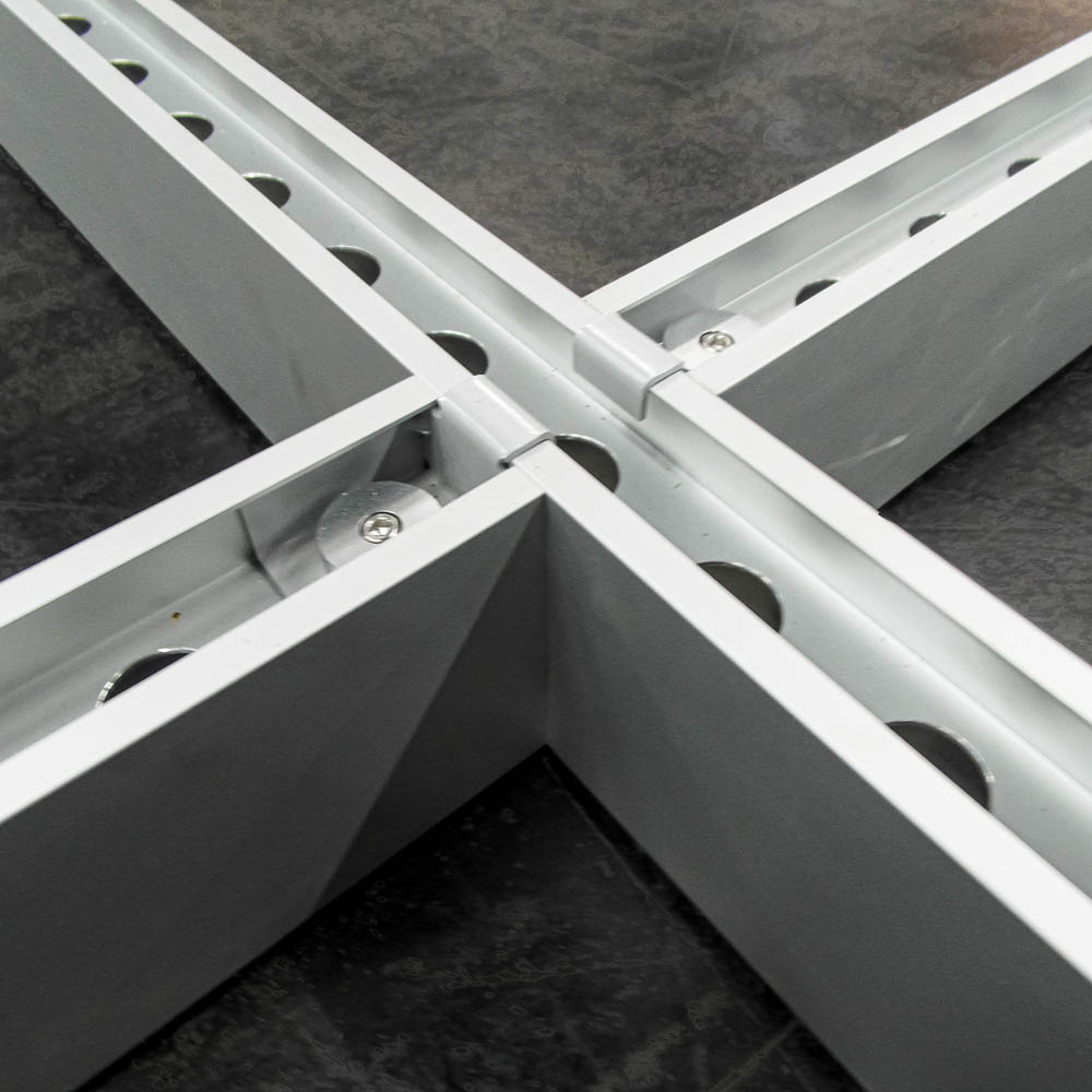 Ten wysokiej jakości profil aluminiowy łączy w sobie formę, funkcjonalność i elastyczność w jednym elemencie systemu. Dzięki dwustronnemu wgłębieniu, standardowa szyna oświetleniowa może być bezproblemowo zintegrowana, zapewniając eleganckie ukrycie wszystkich przewodów i kabli zasilających. Niezależnie od tego, czy jest stosowany jako element sufitu podwieszanego, czy montowany bezpośrednio na ramie, profil sufitowy Recto jest dostępny w różnych długościach i idealnie dopasowuje się do każdej konstrukcji. Rezultatem jest czyste, funkcjonalne i estetyczne rozwiązanie dla targów, przestrzeni handlowych i wystaw, gdzie oświetlenie i konstrukcja komponują się w jeden spójny system.