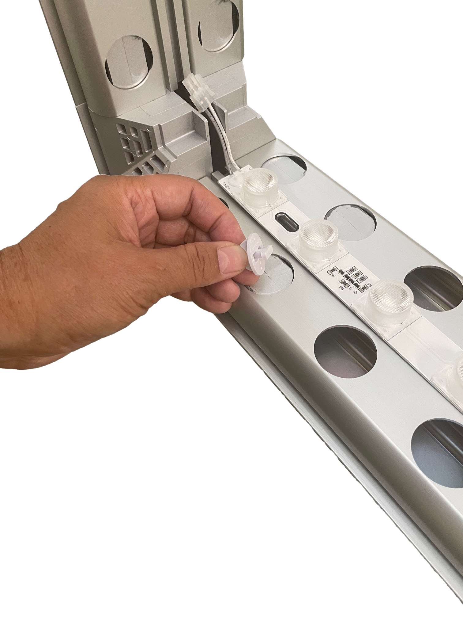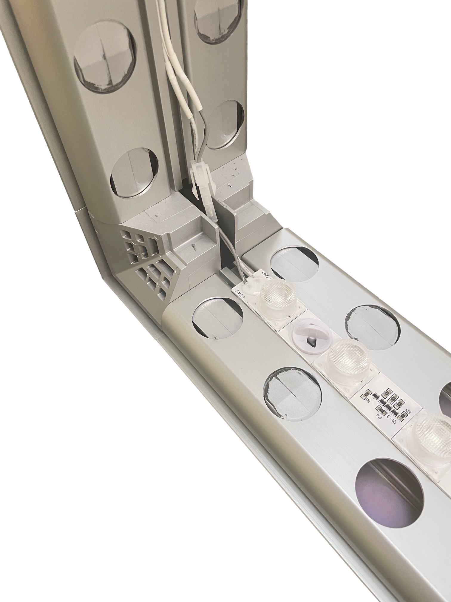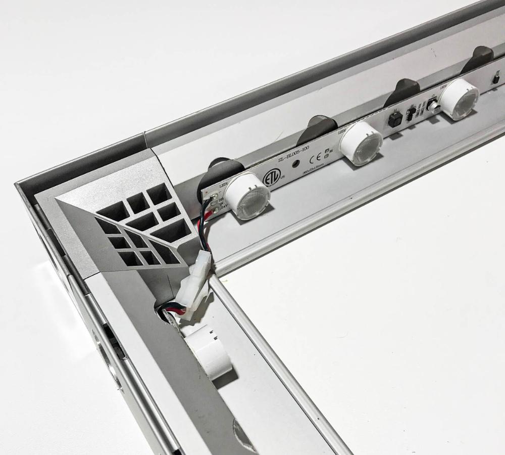 Zasilacz jest płynnie zintegrowany z profilem, co pozwala zachować elegancję konstrukcji i brak widocznych elementów zewnętrznych. Obie opcje oświetlenia – LED Board i LED Ladder – zapewniają równomierną jasność, elegancki wygląd i energooszczędne oświetlenie, dzięki czemu idealnie nadają się do ram lightboxów, systemów wystawienniczych i ekspozycji sklepowych.