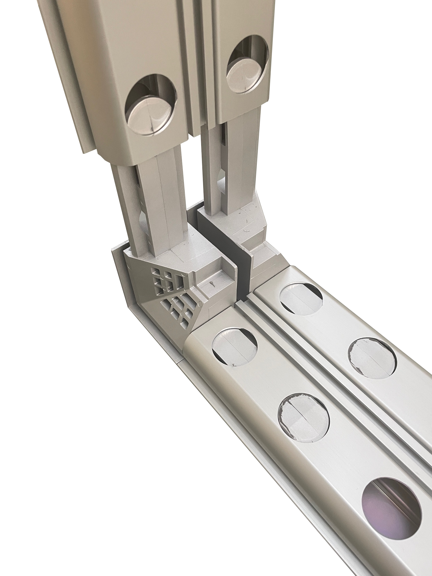 Klasyczna ścianka ekspozycyjna o wymiarach 992 x 1984 mm wyposażona jest w innowacyjny, samoblokujący łącznik narożny Matrix Connect, który umożliwia szybki i bezpieczny montaż.