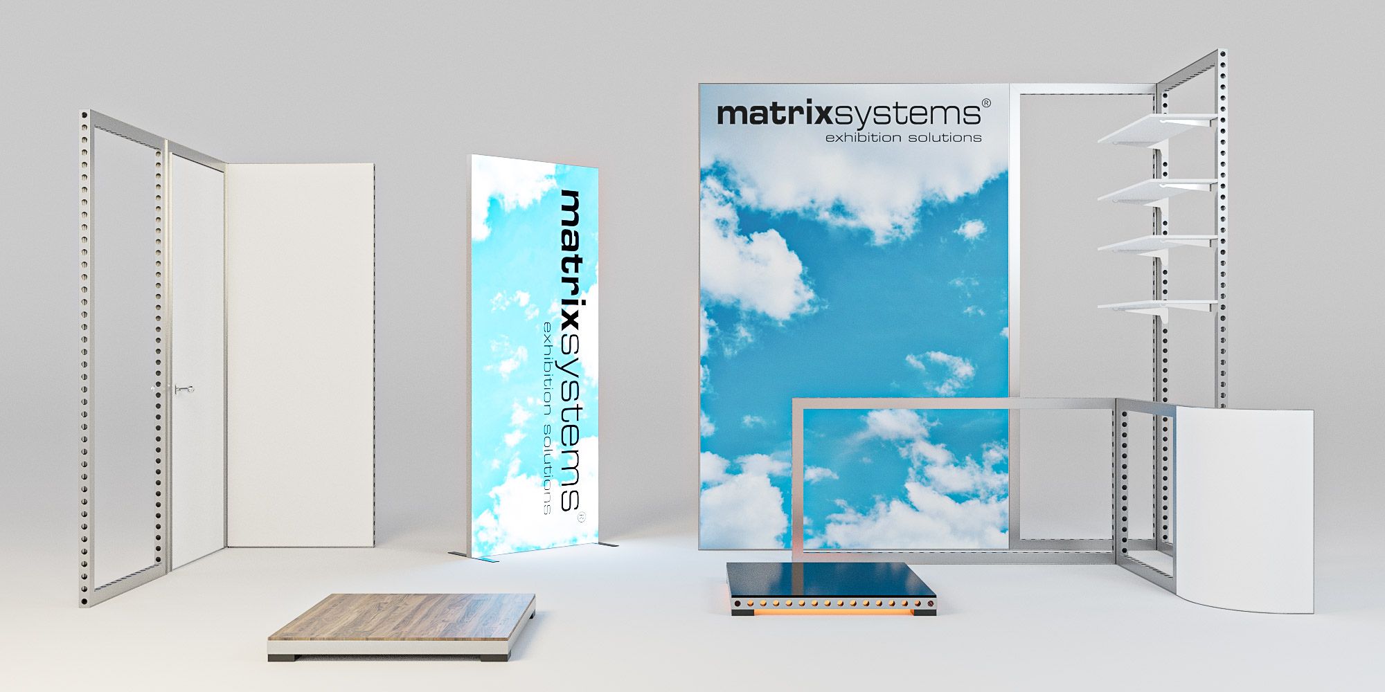 Our Matrix Systems displays and partition walls are unique, eye-catching solutions designed to attract attention and structure space effectively. The classic display stand, measuring 992 × 1984 mm, features our innovative self-locking Matrix Connect corner connector, ensuring precision and stability without the need for tools.