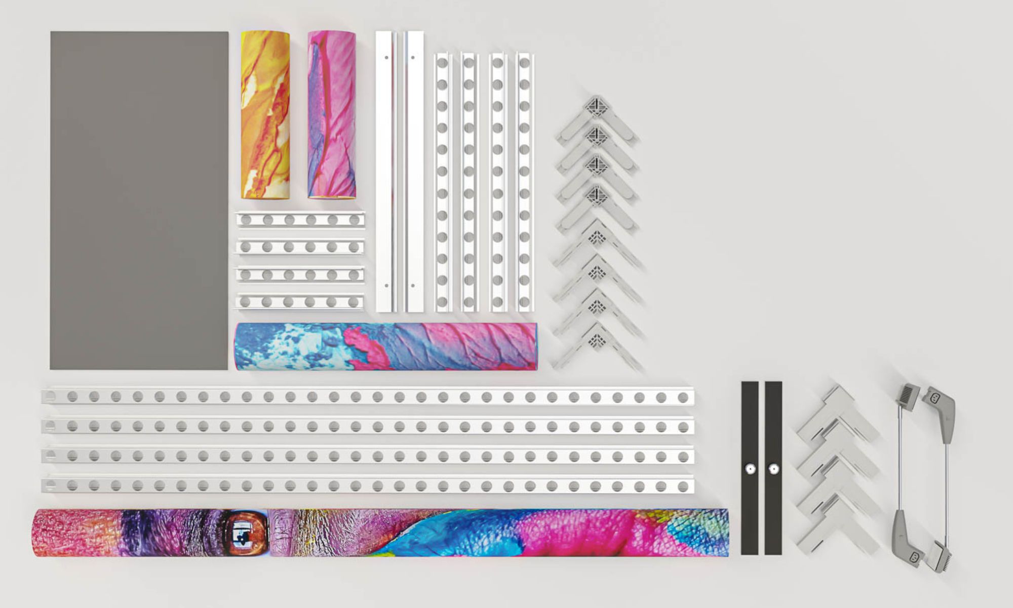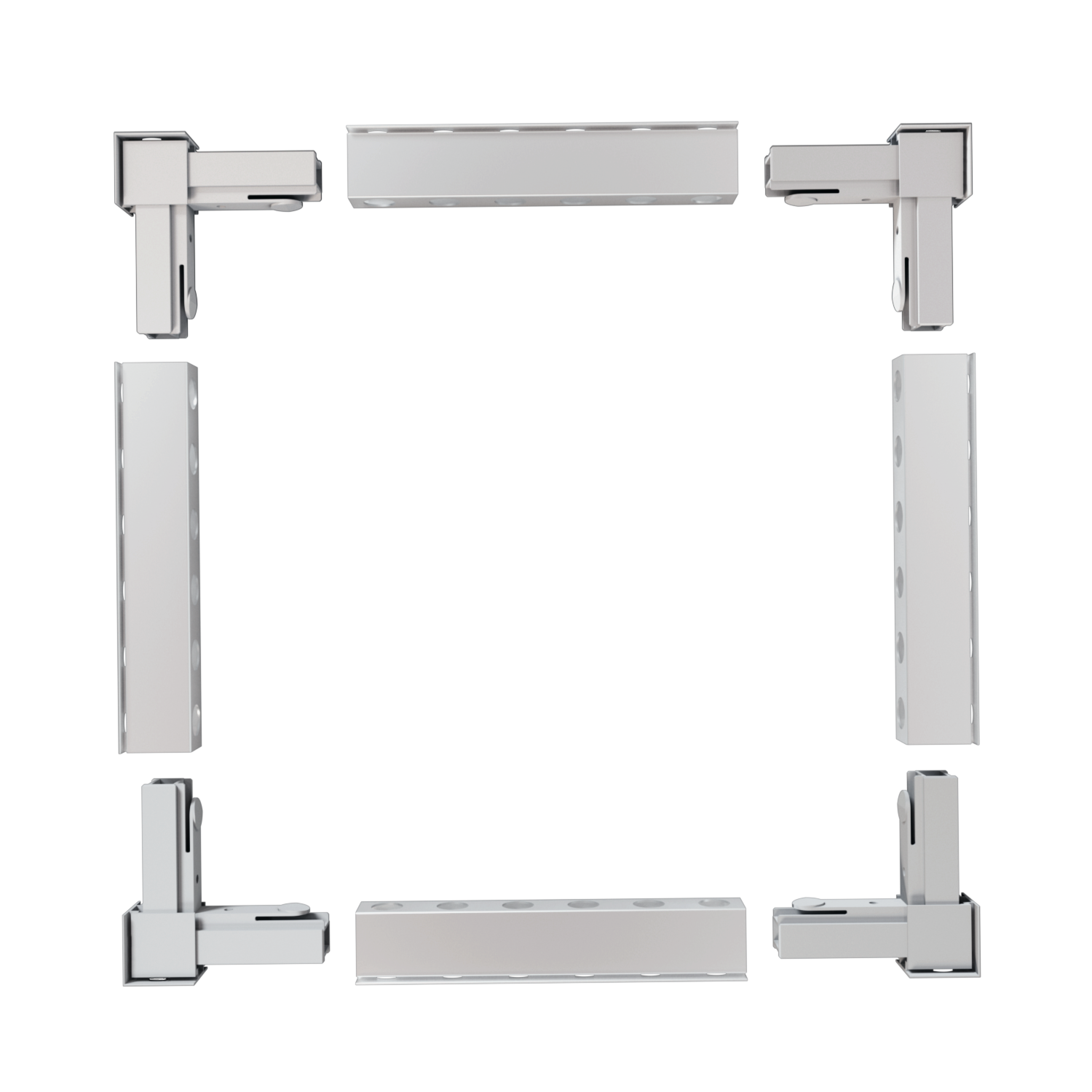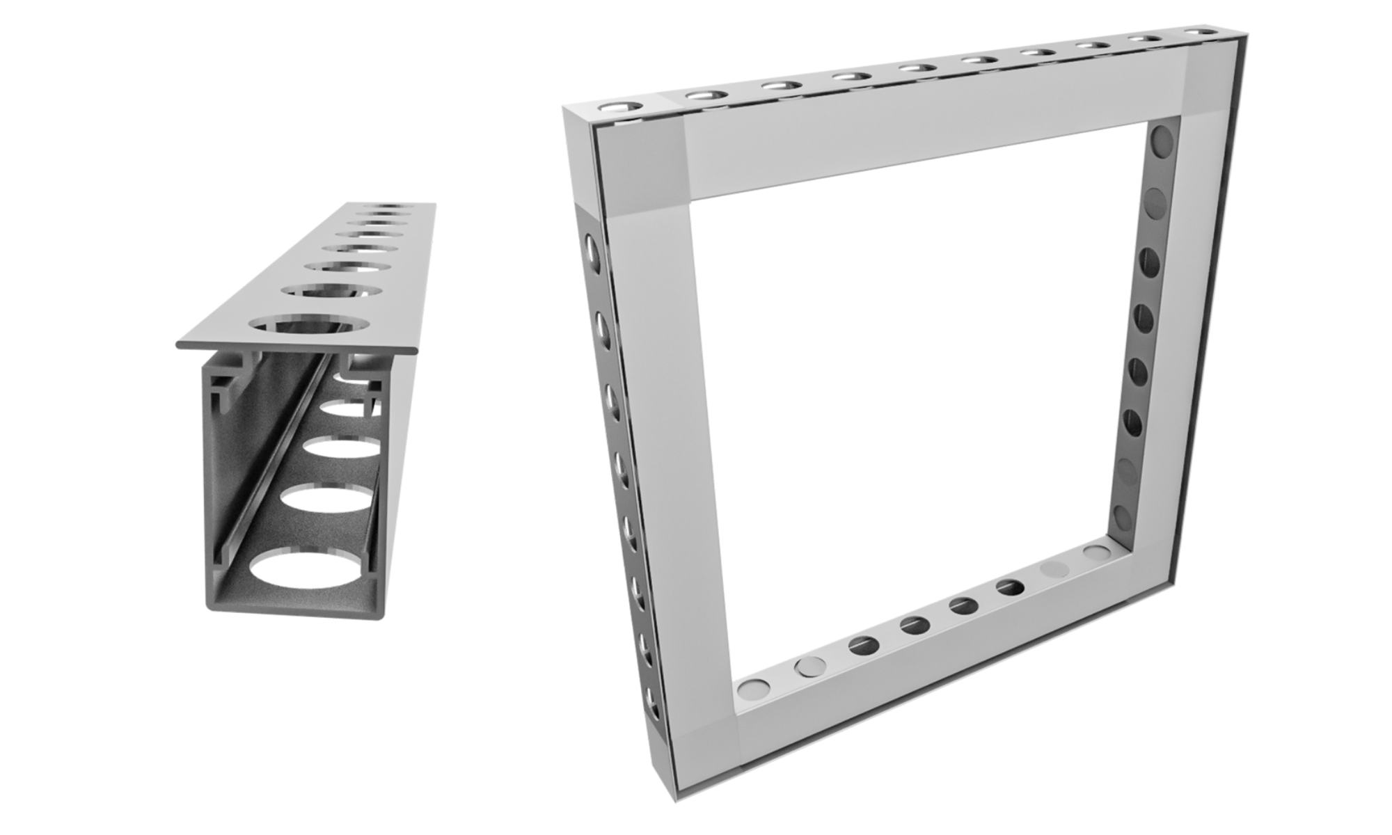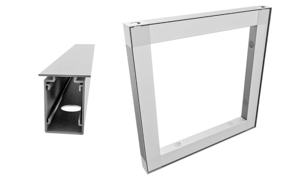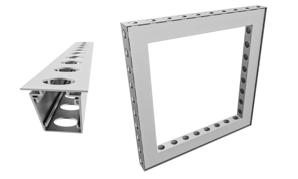 Our Connect System uses self-locking corner connectors that join aluminum profiles without welding or screws. This precise plug-in principle ensures maximum stability and perfect alignment, even for large modular structures. Thanks to its modular design, frames can be configured in any size and easily expanded or reassembled.