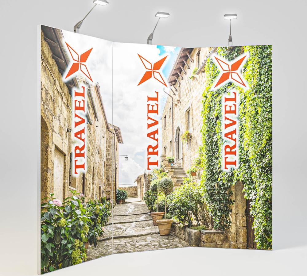 This portable exhibition system combines flexibility, ease of use, and professional presentation quality — ideal for trade shows, events, and mobile brand displays.