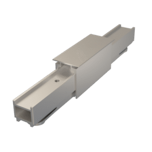 A straight connector is used to join two profiles together to create a longer profile. This version of the connector allows for simple and secure transportation of an extended profile.