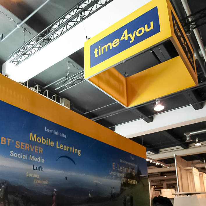 Targi i eventy: sufitowe moduły reklamowe, podświetlane eksponaty reklamowe, elementy oświetleniowe